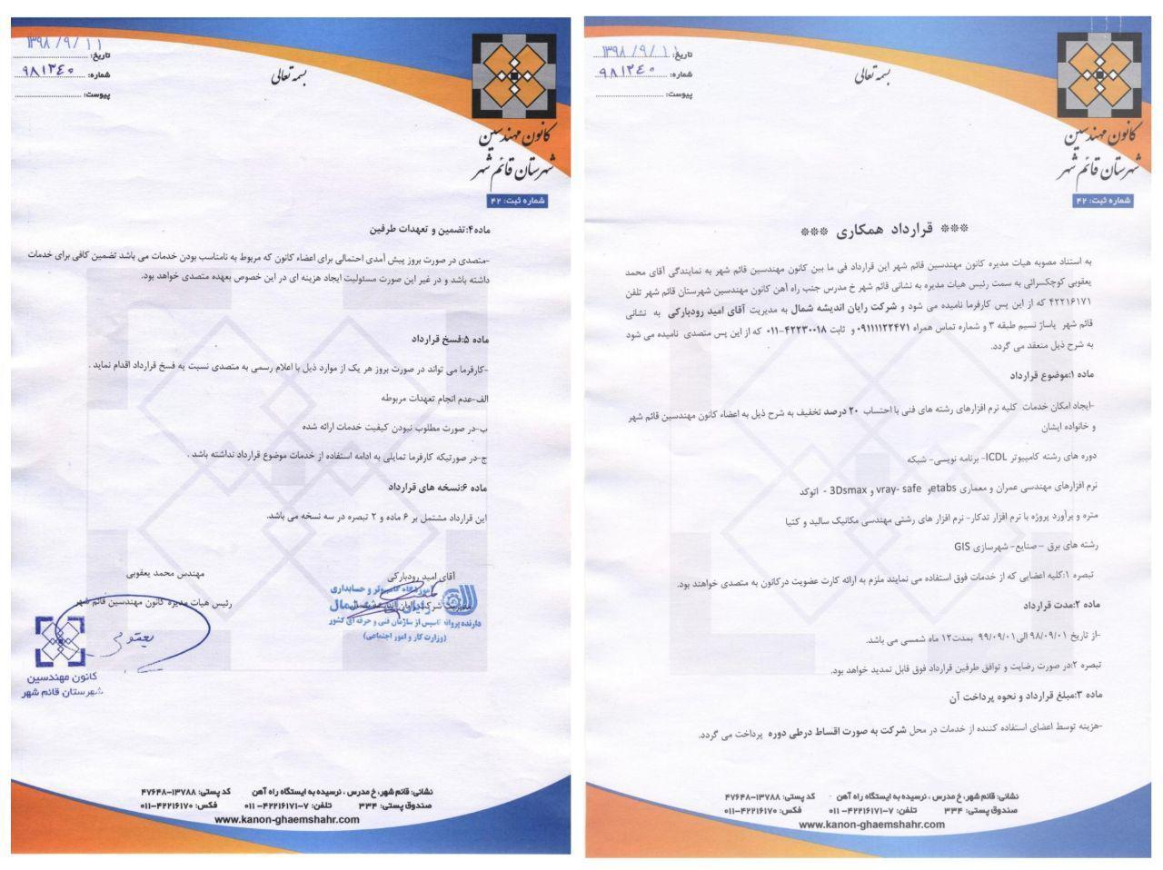 👆🏻شرکت رایان اندیشه شمال طبق قرارداد منعقده با کانون مهندسین قائم شهر با ایجاد امکان خدمات کلیه نرم افزارهای رشته های فنی با احتساب ۲۰ درصد تخفیف در خدمت اعضای محترم کانون می باشد.